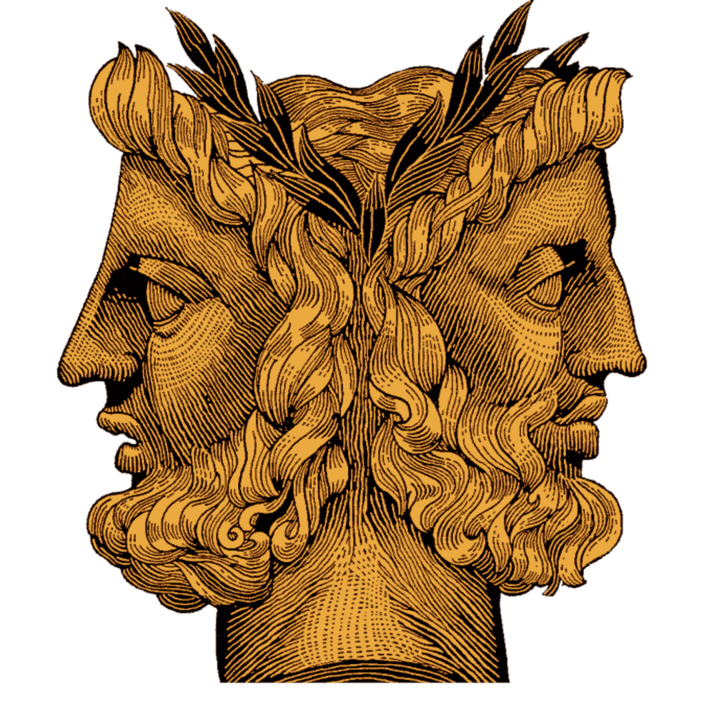 Janus, the Roman two-faced (he could see future and past) God of beginnings and endings, transitions, and time itself.